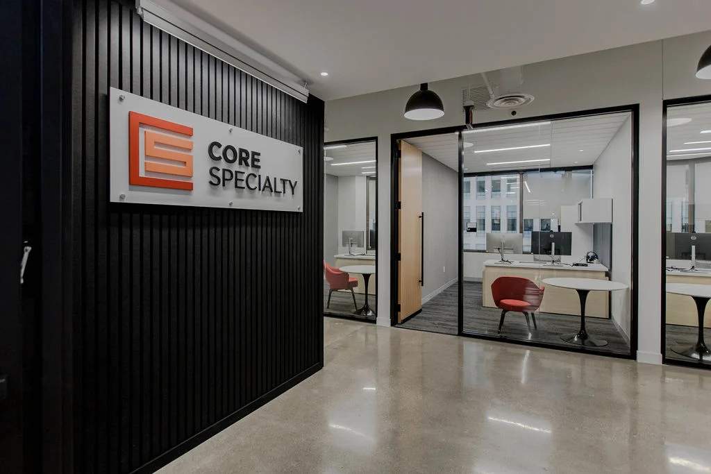 After Core Specialty reached out to MA Design to help expand their office, our team conducted several feasibility studies and test fits on different floors to determine the best expansion strategy. With the 12th floor having been recently renovated, Core chose to renovate the entire 10th floor to meet their growing needs. MA Design collaborated with 39Forward and Terrex under strict time and budget constraints to quickly develop test fits, demolition and construction documents, and finish palettes that tied back into the 12th-floor design. Working within a tight schedule and budget, MA ensured the new space aligned with Core’s office standards and maximized functionality.
