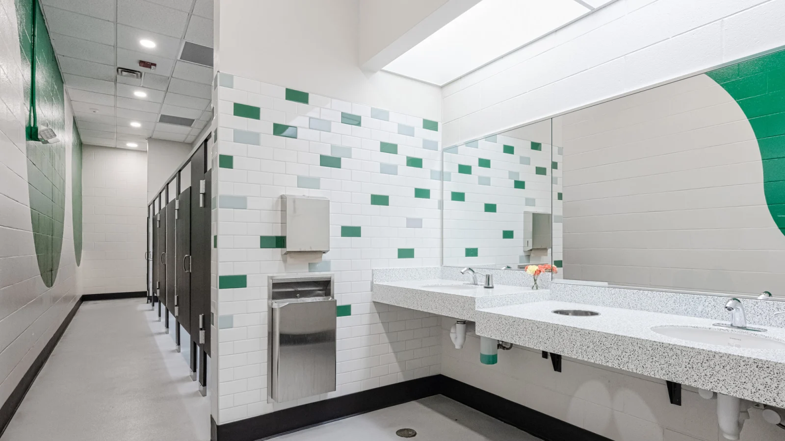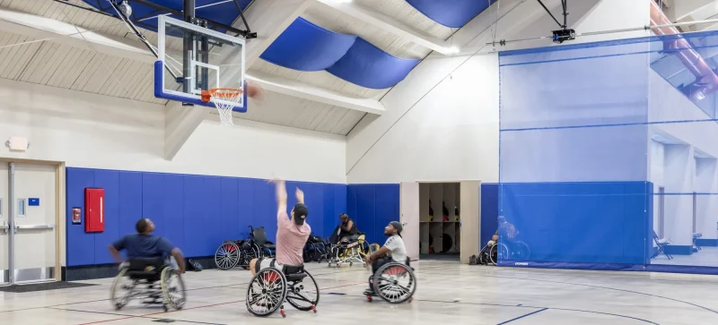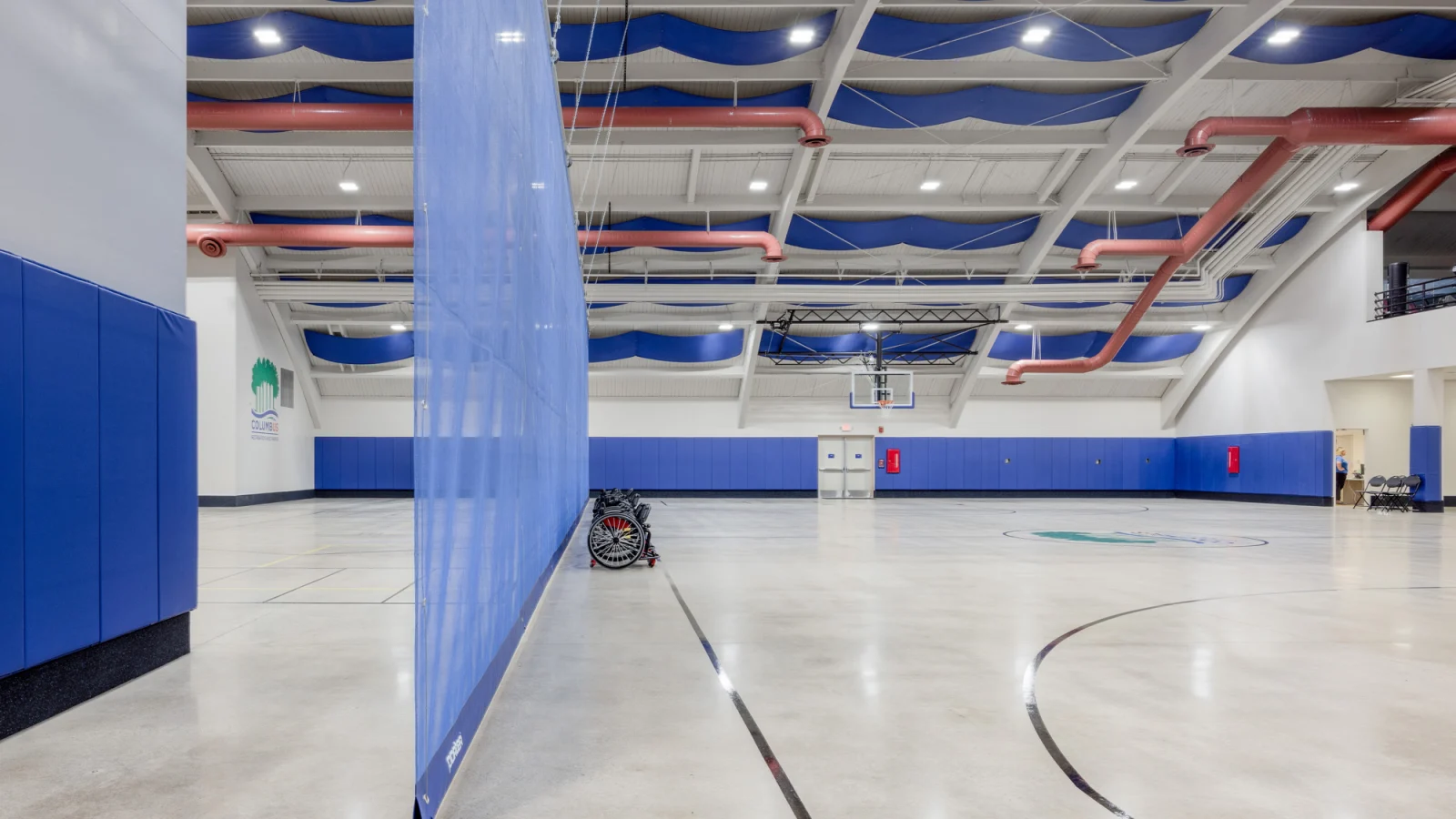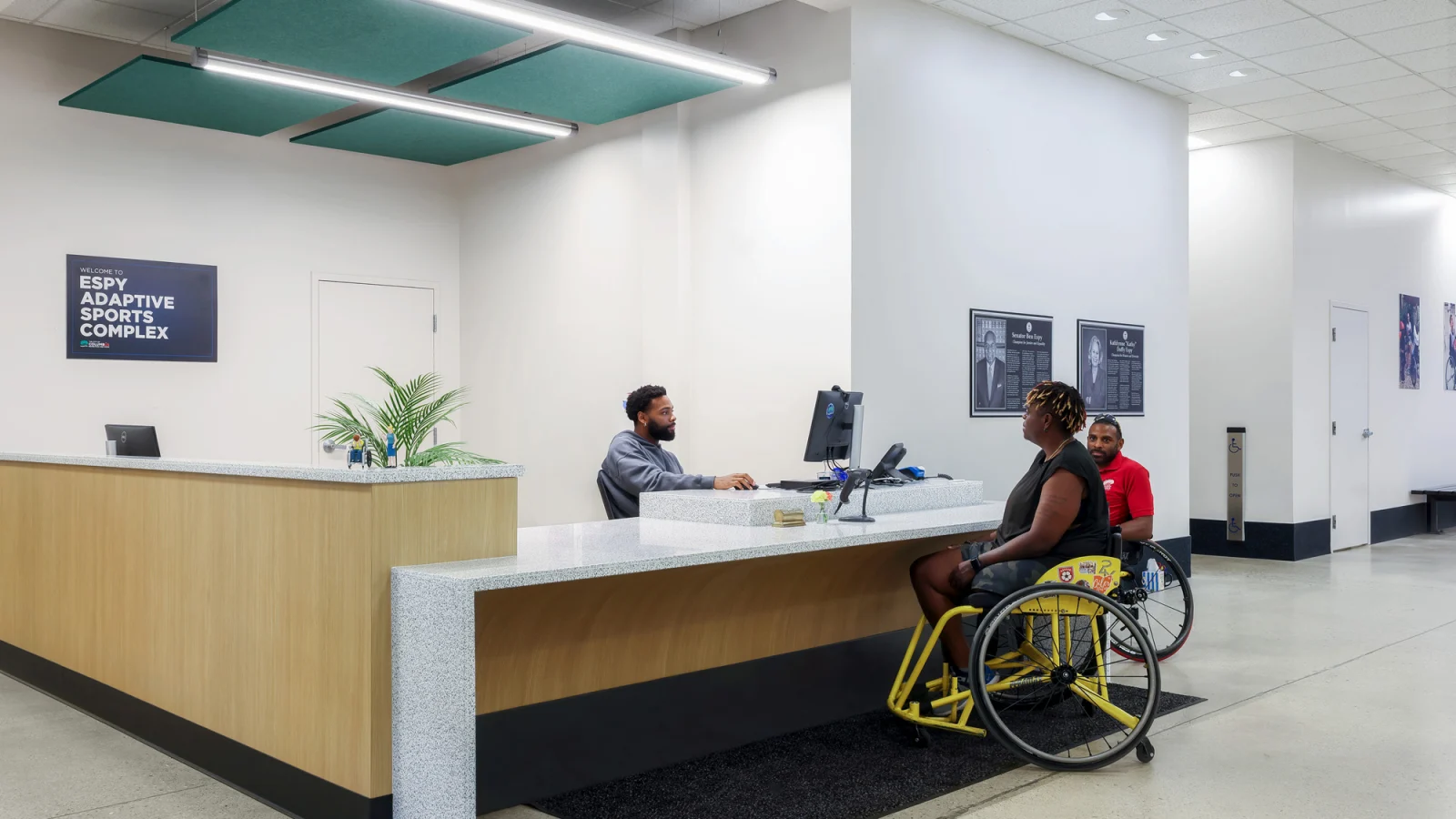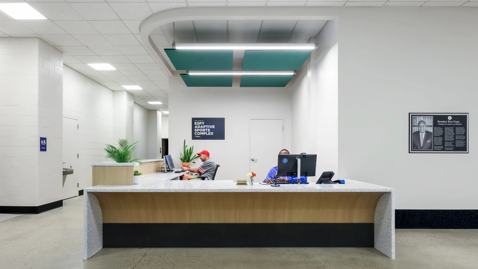 The team created solutions for more accessible restrooms, more easily navigable reception area as well as upgrades to the gymnasium for better visibility.