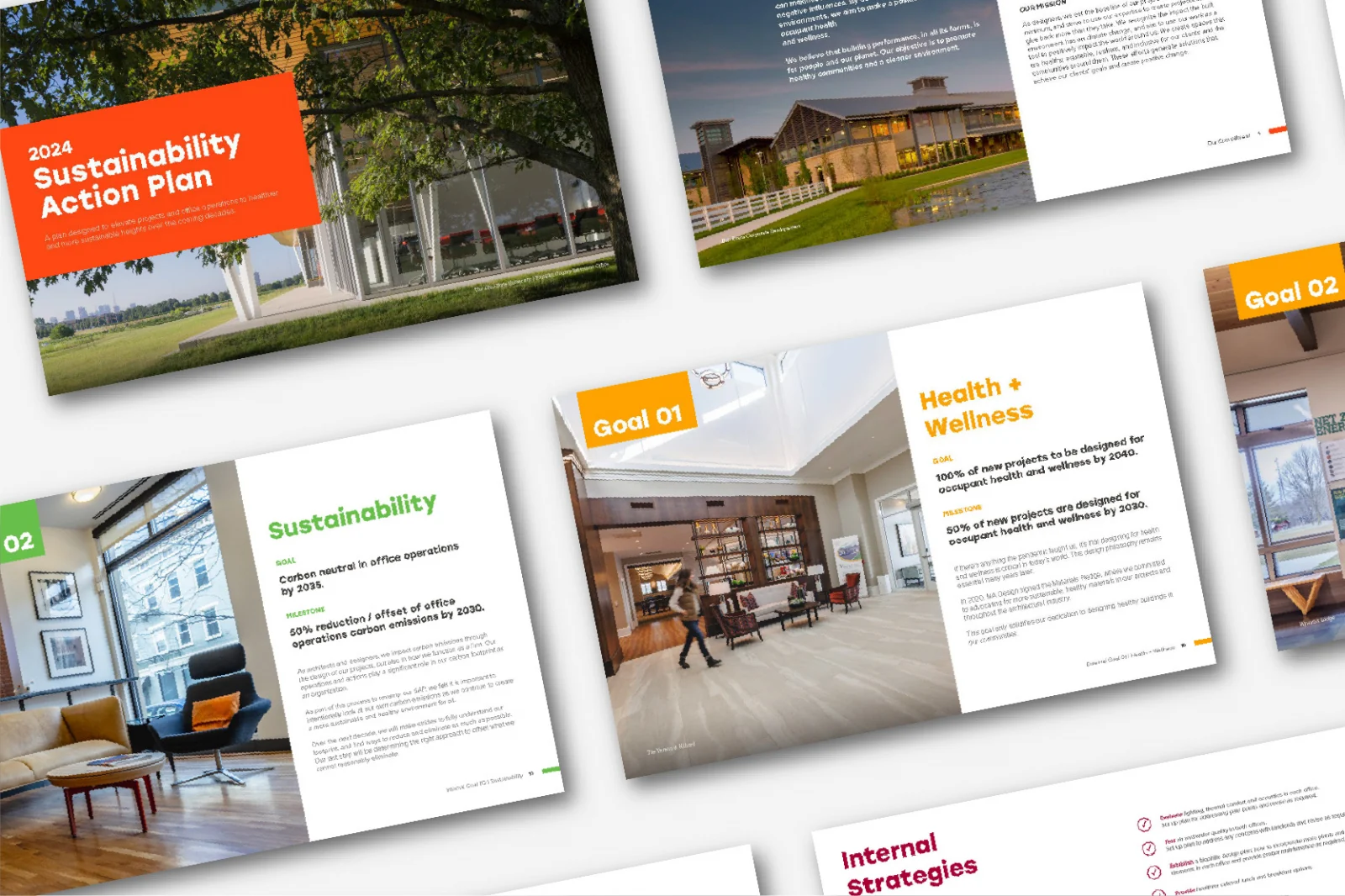 The new and improved SAP establishes four goals focused on both internal office operations and external project-specific impacts, driving our mission to create a healthier and more sustainable world for all. Internally, MA Design is committed to achieving carbon-neutral offices designed for occupant health and wellness by 2035. Externally, our projects aim to reach carbon neutrality and prioritize occupant health and well-being by 2040. These goals address both how MA Design works and the environments we create, all while emphasizing sustainable purchases, transportation, and office design, while also tackling challenges such as client education, financial feasibility, and integrating benchmarking and modeling processes.