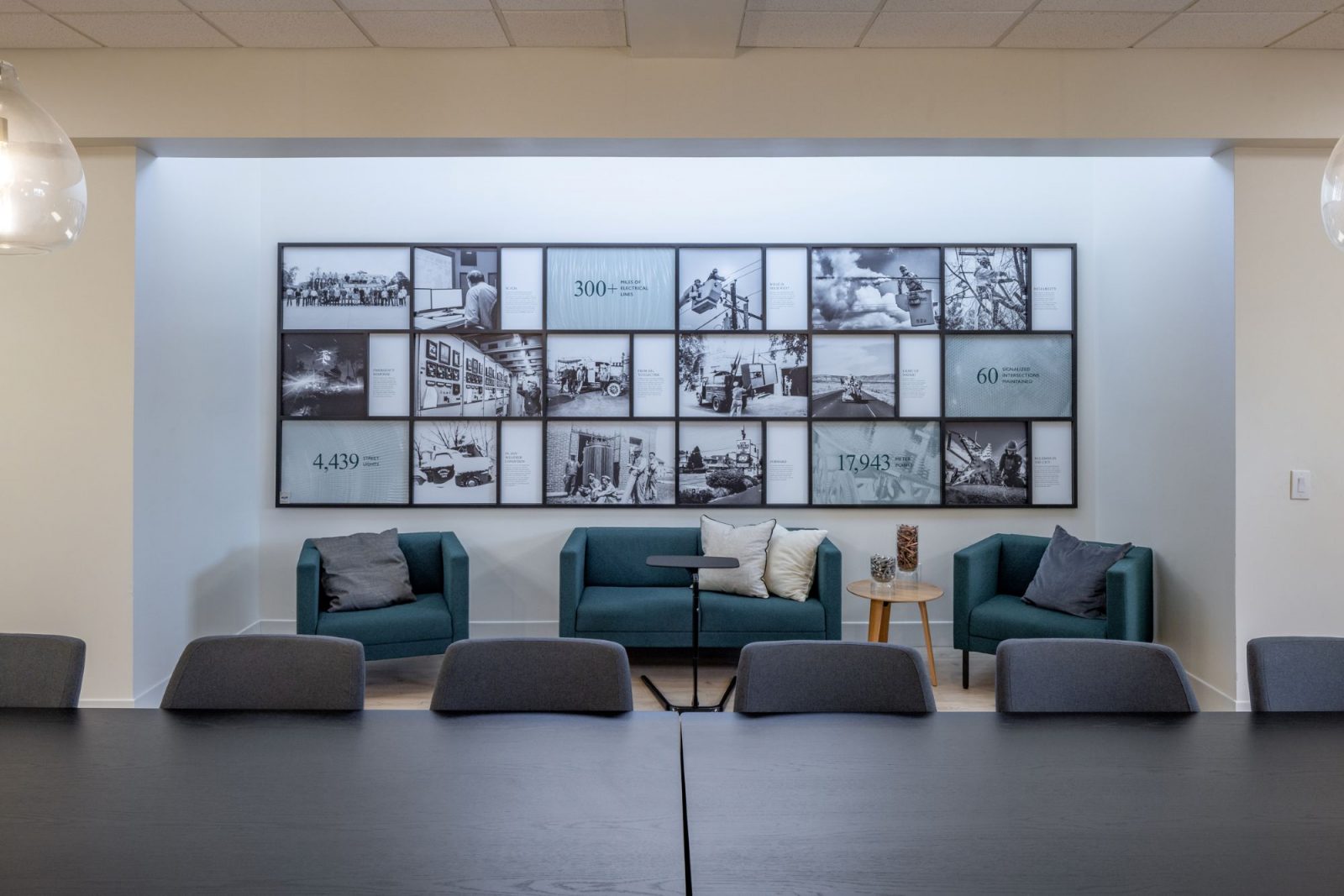 In collaboration with WED and project partner TENFOLD, MA Design developed an enhanced entry sequence that elevates the client experience. The final design incorporated experiential graphics to create a welcoming, visually dynamic lobby while supporting the operational goals of the Electric Division through better space utilization.